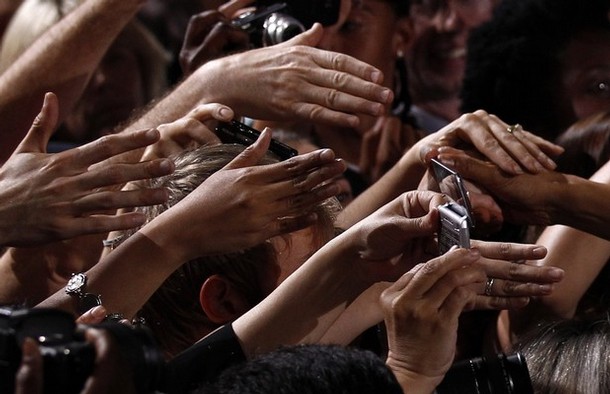 U.S. President Barack Obama greets supporters at a fundraiser at Soundstage 30 at Sony Picture Studios in Los Angeles, California, April 21, 2011. REUTERS/Jim Young (UNITED STATES – Tags: POLITICS)