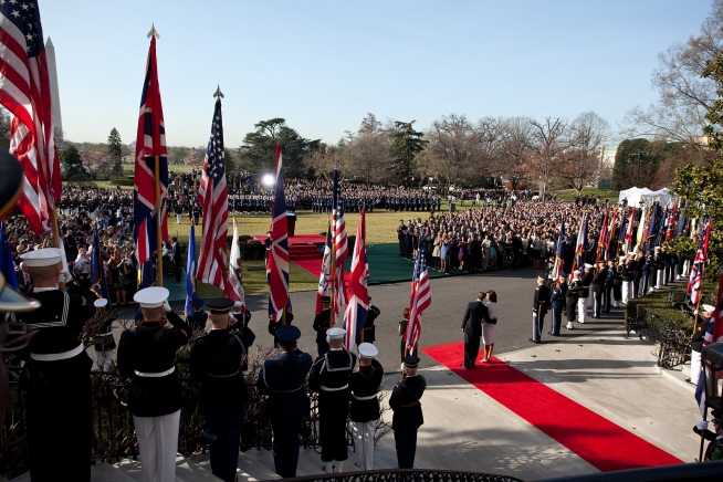 British Prime Minister David Cameron receives an official White House arrival ceremony