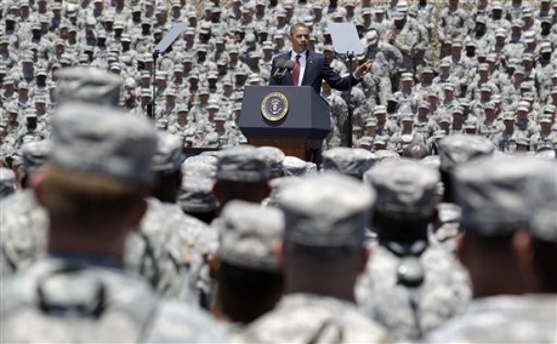 President Barack Obama speaks to soldiers at the Fort Stewart Army post, Friday, April 27, 2012, in Fort Stewart, Ga. (AP Photo/David Goldman)