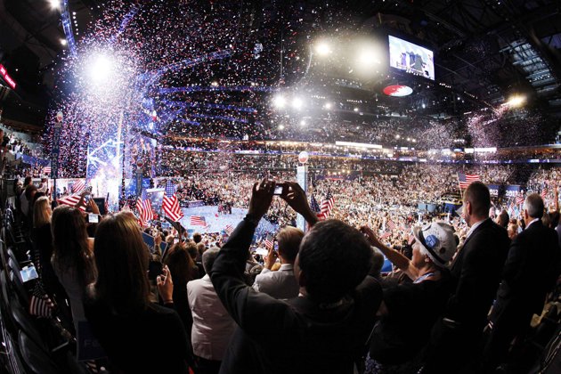 Confetti bursts following the speech of President Barack Obama during the final session of the Democratic National Convention in Charlotte, North Carolina, September 6, 2012. REUTERS/Jonathan Ernst
