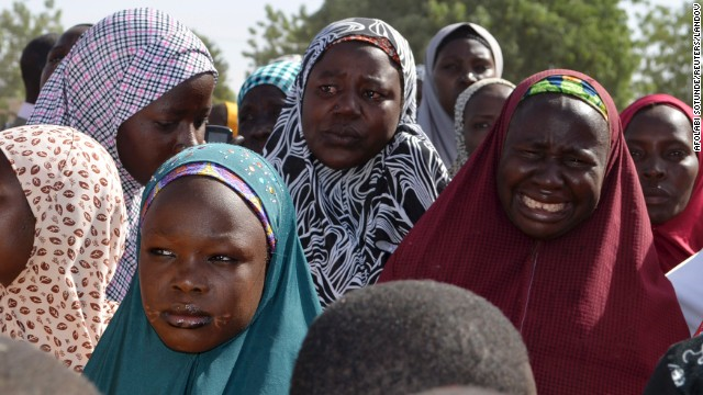 Mothers weep during a meeting with the Borno state governor on April 22 in Chibok.