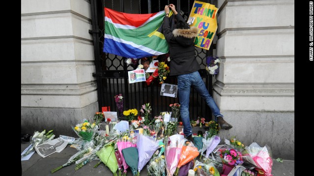 LONDON, UNITED KINGDOM – DECEMBER 06: Members of the public lay tributes to former South African President Nelson Mandela outside South Africa House near Trafalgar Square on December 6, 2013 in London, England. Mandela was a leader that helped conquer apartheid in racially divided South Africa after being jailed for his activism for decades. He was South Africa’s first black president. He died yesterday at the age of 95. (Photo by Stuart C. Wilson/Getty Images)