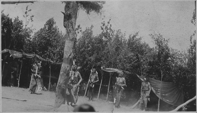 Native American-1886 engraving showing Cree Indians performing a Sun (or Thirst) Dance