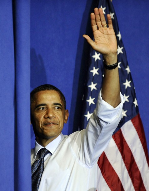 US President Barack Obama waves as he leaves after speaking at a Town Hall meeting on the on-going efforts to find a balanced approach to deficit reduction at the University of Maryland in College Park, Maryland, on July 22, 2011. Obama joked in an interview with National Public Radio (NPR) that he would like “a debt ceiling deal” for his birthday. The White House and Congress, whose lower house is under Republican control, are currently engaged in tense negotiations in order to raise the 14.3 trillion USD debt ceiling by August 2, after which the US risks defaulting on its payments. AFP Photo/Jewel Samad (Photo credit should read JEWEL SAMAD/AFP/Getty Images)
